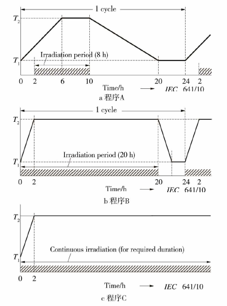 标准的5.2节指出,箱体内的温度,不管是光照阶段还是黑暗阶段,都应符合程序A,B或C的要求。而且指出,在光照阶段,箱体内的温度应以1K/min的速率上升或下降。