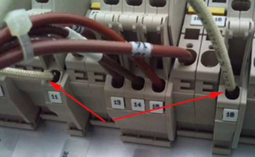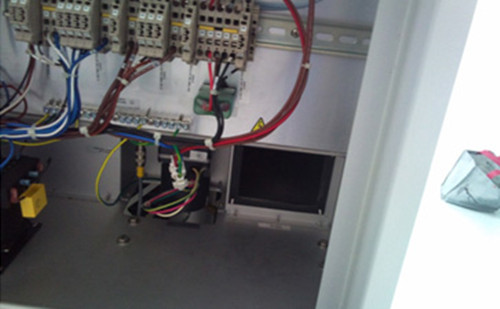二、打开机器左侧的门可以看到接线排下方,如图: