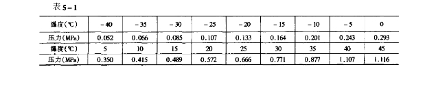 R134a饱满温度与饱满压力对应联系见表5—l: