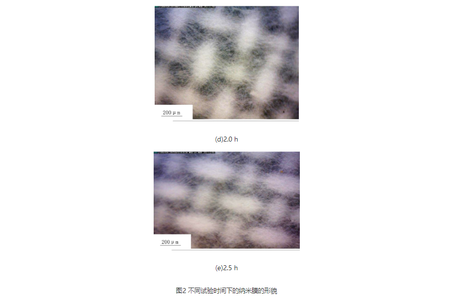 当用网状电极作为接收装置,不同纺丝时间下得到的纳米膜的结构形态如图2所示。