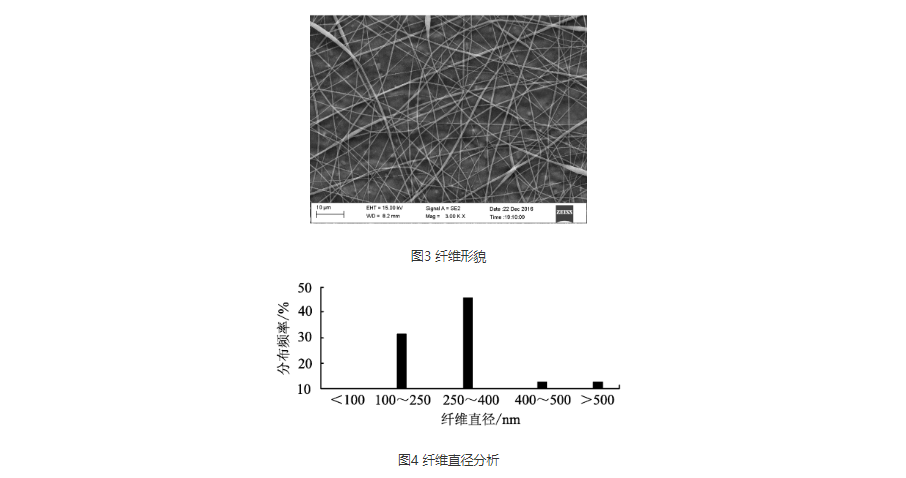 聚乳酸纤维的形态及直径分析如图3、图4。