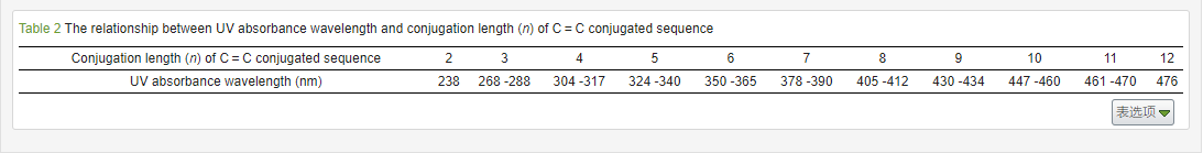 PVC老化后脱除HCl,产生共轭双键(CH=CH)n,共轭双烯λmax= 214 nm,增加一个共轭双键引起增值30 nm,烷基引起增值5 nm, 所以根据相关文献[26~28],不同数目共轭双键对应紫外吸收列于表 2.当有2个或以上的共轭双键存在时,紫外吸收波长随共轭体系增大而增大,往往伴随着增色效应[11, 22],双键数目越多,颜色越深[3],当共轭双键长度达到8以上,就会吸收可见光中的蓝光,从而变黄.