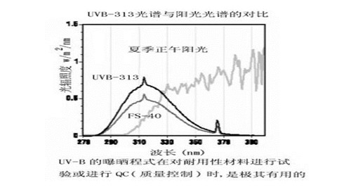 UVA-340可极好地模拟临界短波波长范围的阳光光谱,即波长范围为295-360nm的光谱,UVB-313,用于大程度的加速试验,可以很快地提供试验结果。它们所采用的短波长UV比目前地球上通常找到的UV光波更为强烈。尽管这些比自然波长短许多的UV光能够大程度地加速试验,但它同时也会对某些材料造成不符和实际的退化破坏。