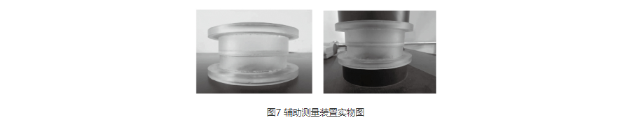 以下图5、图6列举出拱形和蝶形两种口罩在使用辅助测量装置前后夹持状态的示意图。由图5可以看出,使用辅助测量装置前,在TSI8130的上下夹具闭合情况下,口罩在测量过程中未产生明显变形;使用辅助测量装置后,上下夹具闭合后,口罩也无明显变形。由图6可以看出,在未使用辅助测量装置的情况下,口罩在测量过程中产生明显变形;而在使用辅助测量装置后,在上下夹具闭合后,口罩无明显变形[8]。通过对初级版辅助测量装置使用前后口罩基本状态变化的反复试验下,经过大量验证和参数对比及修正,加工生产出了升级版的试验验证装置。