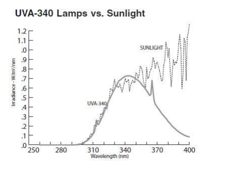 UVA-340灯提供了从365纳米到295纳米太阳能截止值的临界波长范围内的佳太阳光模拟。